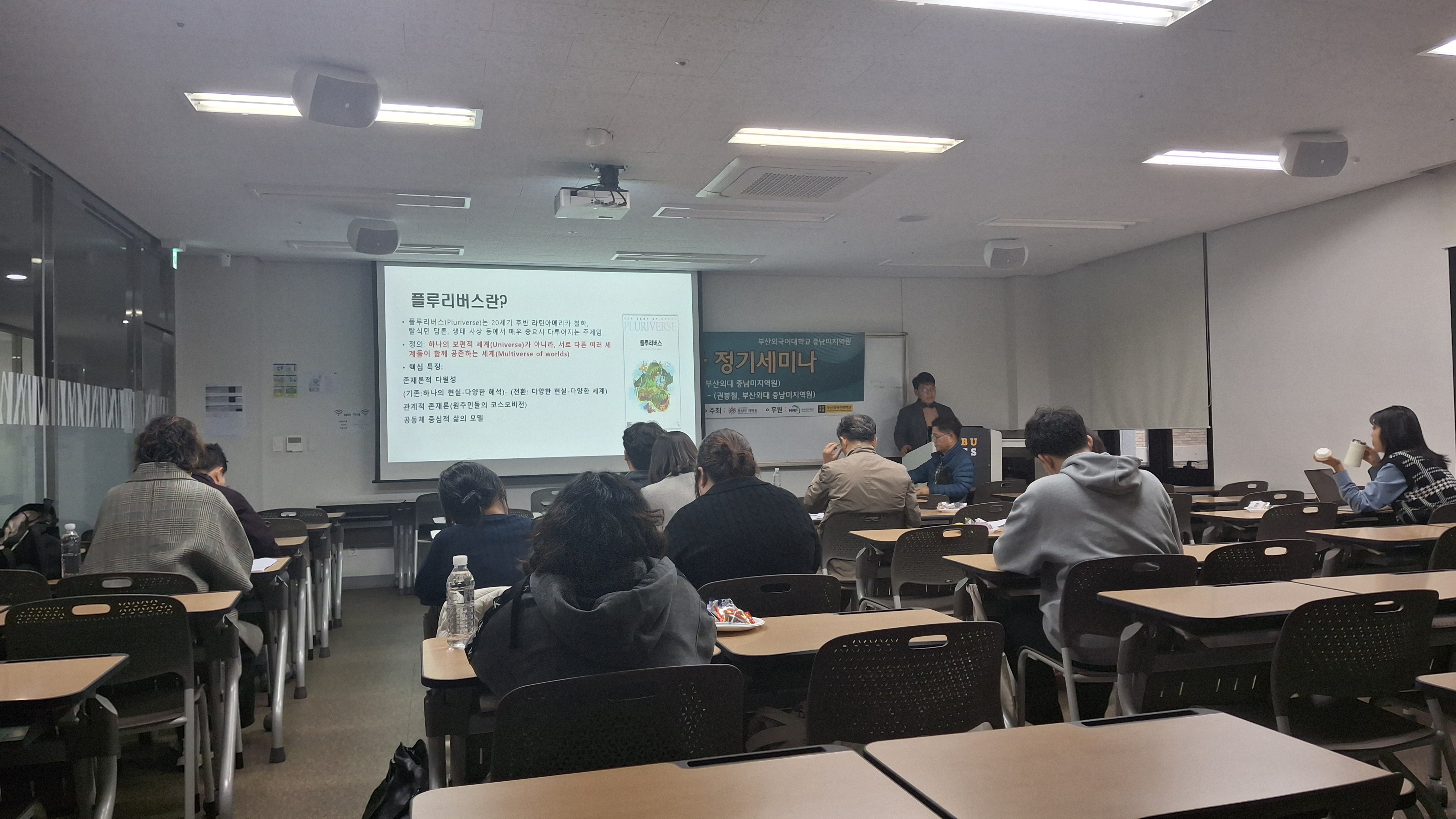 이번 세미나에서는 부산외국어대학교 조영현 교수의「플루리버스(Pluriverse)란 무엇인가?」와 부산외국어대학교 권봉철 교수의「리베라 쿠시캉키의 Ch'ixi 세계: 차이의 존재론과 잠재성의 장」을 주제로 발표가 진행되었습니다.