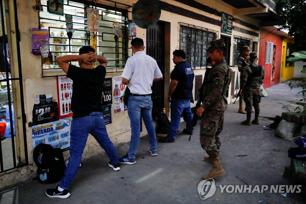 (멕시코시티=연합뉴스) 이재림 특파원 = 대규모 군 병력을 동원한 중미 엘살바도르의 '범죄와의 전쟁' 정책을 놓고 정부와 언론·시민단체 간 평가가 극명하게 엇갈리고 있다. 대대적인 갱단 소탕 작전을 바탕으로 살인 등 강력 사건이 현저히 줄었다는 정부 입장에 대해 시민단체 등에서는 인권 침해 등 무고한 피해자를 양산하고 있다며 비판의 목소리를 내고 있다. 15일(현지시간) CNN 스페인어판과 중남미 매체 인포바에 등에 따르면 나이브 부켈레 엘살바도르 정부는 지난 3월말 '공공질서의 심각한 혼란'을 사유로 비상사태를 선포한 뒤 지금까지 8개월여간 강력범죄 근절 시책을 펼치고 있다. 살인, 마약 밀매, 약탈, 납치 등을 일삼는 'MS-13'(마라 살바트루차)과 '바리오 18' 같은 악명 높은 갱단 근거지에 군·경을 집중적으로 투입해 저인망식으로 범죄자를 검거하고 있다. 최근에는 인구 29만명 정도 되는 소야팡고 지역 길목을 차단하고 가가호호 살피며 갱단 색출 작업도 펼쳤다. 엘살바도르 정부는 갱단원에 대한 '무관용 철권 정책'으로 살인율이 급감하는 등 사회 안정을 찾아가고 있다고 자평하고 있다. 자신의 국정 수행 과정을 적극적으로 홍보하는 부켈레 대통령은 '살인 사건 없는 날'을 트위터로 알리며 "정부 정책은 효과를 발휘하고 있다"며 "우리 국민은 이 정책에 만족하고 있다"고 주장한다. [로이터 연합뉴스 자료사진. 재판매 및 DB 금지]