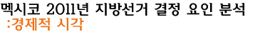제도혁명당(PRI)이 2011년 7월 3일 실시된 3개 주 지방선거에서 압승했다. 이번 선거는 칼데론(Felipe Calderon) 정부와 집권당인 국민행동당(PAN)에 대한 사실상의 중간평가인 동시에 2012년 7월로 예정된 대선과 총선을 가늠케 하는 중대한 사건이었다. 특히 인구 1,500만 명이 거주하는 멕시코의 정치 1번지인 멕시코주 선거 결과는 그 상징성과 더불어 페냐 니에토(Enrique Pena Nieto) 현 주지사가 PRI의 유력한 차기 대선후보라는 점에서 매우 중요했다. PRI는 전통적인 텃밭인 멕시코주에서 62.5%라는 높은 득표율로 PAN(12.4%)과 제2 야당인 제도혁명당(PRD, 21%)을 제쳤다. 제2 야당으로 까지 위축되었던 PRI의 재부상은 이미 2009년 중간선거와 2010년 지방선거에서 확인되었기에 이번 선거 결과가 새로운 것이 아니다. 그럼에도 불구하고 급진좌파인 PRD와의 선거 연대에도 불구하고 PAN에 대한 민심이반이 가속화되고 있다는 점을 재확인한 것은 매우 중요하다.