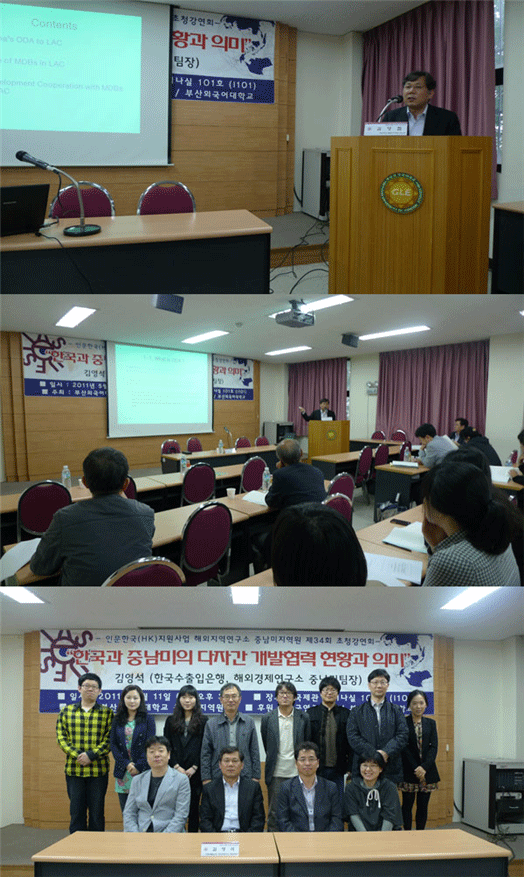 김영철(HK교수)의 사회로 진행된 이번 초청강연회는『한국과 중남미의 다자간 개발협력 현황과 의미』를 주제로 한국수출입은행, 해외경제연구소 김영석 중남미팀장이 약1시간반에 걸쳐 강연을 하였고 30분간 질의응답시간을 가졌다.
