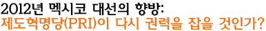 그러나 거의 역사 속으로 사라질 것처럼 보이던 PRI는 2012년 대선을 앞두고 다시 회생했다. 최근 실시된 각종 여론조사에서 1위를 차지하면서 대선에서의 승리 가능성을 높였다. 물론 PRI가 이렇게 회생한 데에는 PRI 자신의 변화보다 PAN과 PRD의 실패에 더 큰 원인이 있다. 무엇보다 멕시코 경제의 지속적 어려움으로 인해 유권자들이 PAN에 등을 돌렸다. 12년간의 통치 기간 동안 PAN은 의미 있는 변화를 이루어내지 못했다. 유일하게 내세우는 범죄조직과의 전쟁 또한 폭력만을 증가시켰을 뿐 근본적 해결책을 찾지 못하고 있다. 한편 PRD의 경우 2006년 대선 패배 이후 로페스 오브라도르의 세련되지 못한 행동으로 인해 그에 대한 중산층의 지지가 이탈했다. 또한 내부 분열로 인해 아직 대선을 위한 전열조차 가다듬지 못하고 있다.