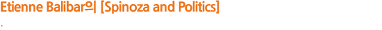 이 책은 현대 프랑스의 유명한 좌파 정치철학자인 에티엔 발리바르가 17세기의 스피노자의 정치철학, 신학, 윤리학의 핵심적 담론을 현재의 시각에서 재해석한 것이다. 그야말로 인문한국 연구의 한 방식을 보여준다고 하겠다. 스피노자는 오늘날 인문학과 사회과학의 진보적 흐름을 개척한 사람이다. 이미 몇 백 년 전에 근대성의 출발점인 데카르트의 합리주의 흐름을 비판한 위대한 비주류 철학자이다. 유럽의 합리주의 인식론의 핵심은 영혼과 육체의 위계서열적 이분법에 있다. 물론 전자가 우위에 있음은 물론이다. 이에 비해 스피노자는 "영혼과 육체가 두 개의 다른 '실재'가 아니라 하나의 같은 것이라고 생각한다. 동일한 개인이 어떤 때는 사고의 복합체로 어떤 때는 육체의 복합체로 인지된다. 즉 영혼은 육체의 사고이다"고 한다(2008, 위의 책, 90).