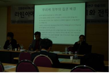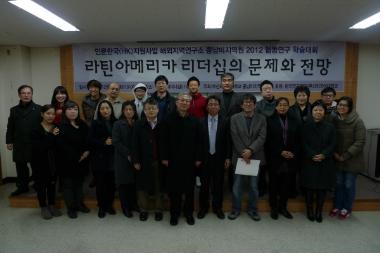 인문한국(HK)지원사업 해외지역분야 연구소 중남미지역원은 지난 12월 18일 화요일 오후1시30분부터 부산외국어대학교 국제관세미나실 (I101)에서 『라틴아메리카 리더십의 문제와 전망 』이라는 주제로 2012협동연구 학술대회를 개최하였다. 이번 학술대회는 총 2부에 걸쳐 진행되었다.