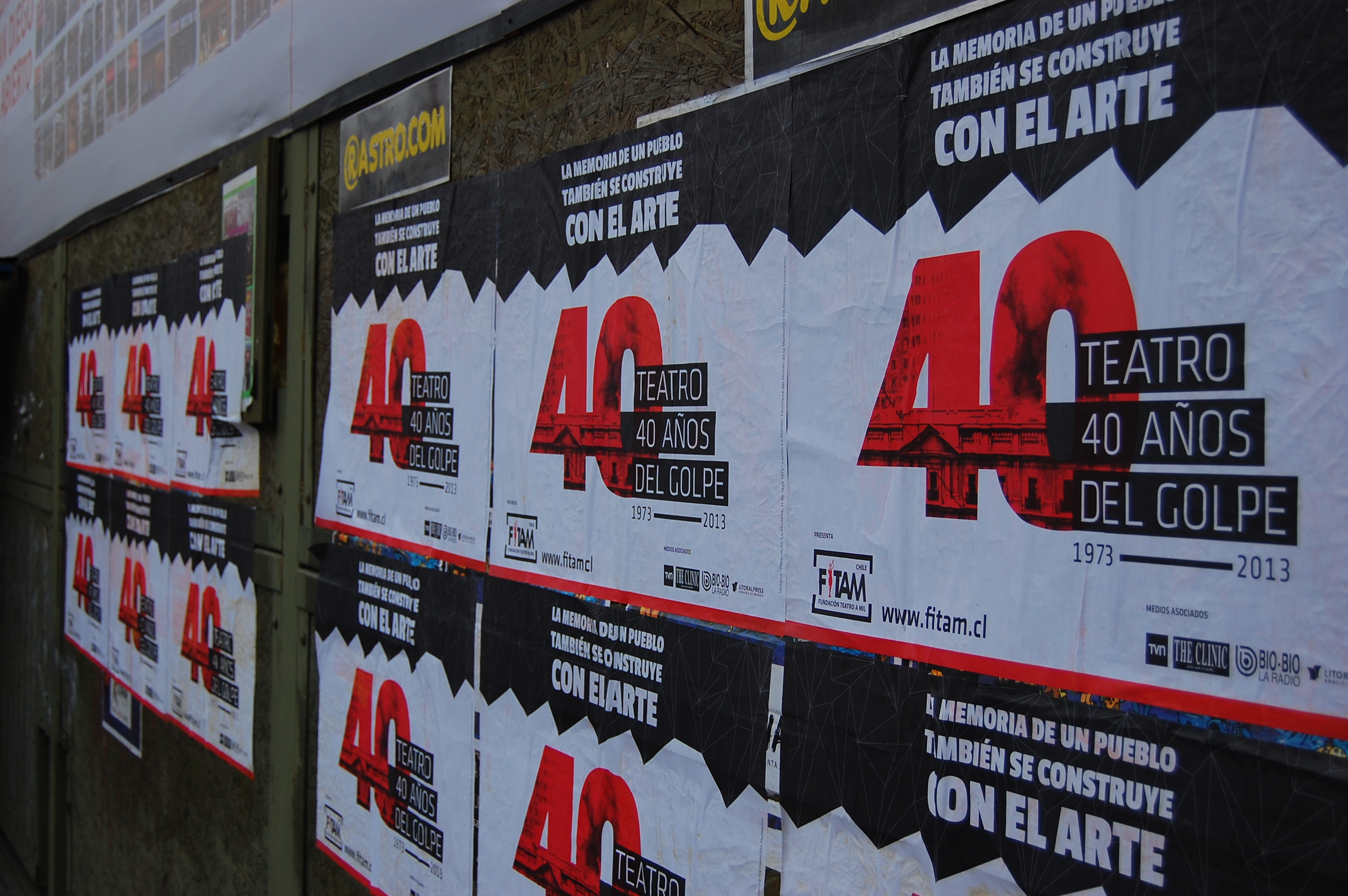 (사진설명3)칠레 쿠데타 40년과 관련 특별 연극 공연 시리즈를 알리는 포스터가 9월 9일 대통령궁 근처에 붙어 있다.