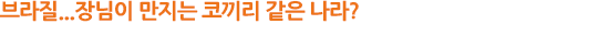 브라질은 코끼리만큼이나 큰 나라이다. 브라질에도 봄, 여름, 가을, 겨울이 있다. 우리나라와는 지구 정반대에 위치하다 보니 사계절과 밤낮이 반대로 나타난다. 시차도 정확히 12시간 차이가 난다. 경제와 문화도 발달됐다. 브라질은 면적이 세계에서 5번째로 크고, 인구도 2억 명으로 세계 5위다. 경제규모는 세계 10위권을 유지해 2000년대 초 미국 골드만삭스 보고서에서 만든 ‘브릭스[BRICs: 브라질(Brazil), 러시아(Russia), 인도(India), 중국(China)]의 머리글자를 차지하고 있다. 최근 경제상황이 좋지 않지만, 여전히 석유와 철광석, 망간과 석면 등 막대한 양의 천연자원과 커피, 사탕수수, 대두 같은 농산물은 물론 쇠고기와 닭고기 등 축산물 수출이 세계 1,2위를 다투는 세계의 식량창고이기도 하다.