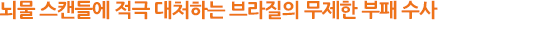 지난 2014년 3월부터 시작되어 질마 호우세피 전 대통령의 탄핵과 주요 정치인에 대한 부정부패 사건의 수사를 촉발시킨 브라질 사법 당국의 소위 ‘라바-자뚜’(Lava-Jato; 세차용 고압 분사기) 작전 수사는 이제 전직 대통령과 전, 현직 각료와 상, 하원 의원 등 83명에 대한 부패수사로 확대되고 국민의 96%가 ‘무제한 부패 수사’에 대한 지지와 시위를 계속하면서 브라질은 이제 성역 없는 전면적인 부패 수사로 몸살을 앓고 있다.