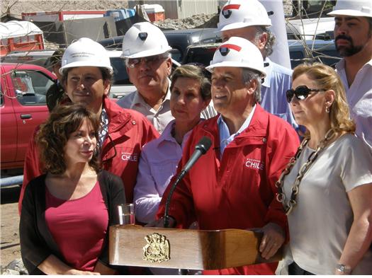<사진 앞줄 왼쪽부터 살바도르 아옌데의 조카이자 작가인 이사벨 아옌데, 막내딸 상원의원 이사벨 아옌데, 그리고 피노체트 지지자 세바스티안 피녜라 전 대통령 부부>