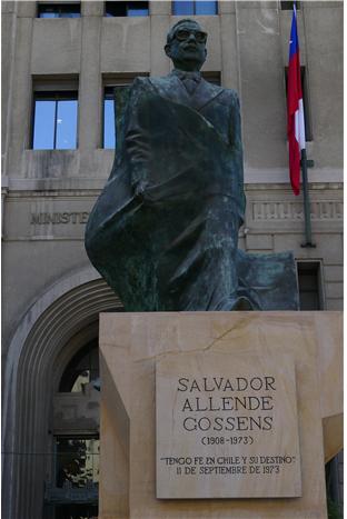 <사진: 칠레 대통령궁 앞 살바도르 아옌데 대통령 동상>